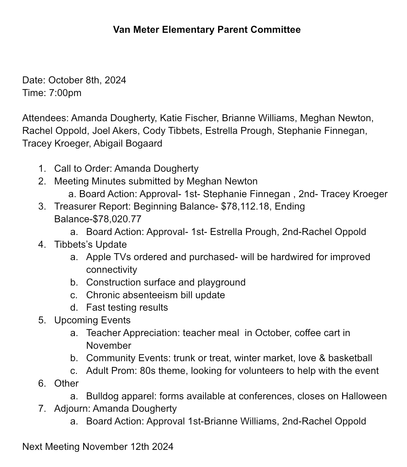 The VMEPC is dedicated to enriching the learning experience for every student at Van Meter Schools. By fostering collaboration among families, staff, and the broader community, we help provide the resources and support needed for students to thrive. Through open communication, thoughtful planning, and strategic funding, we strengthen the school’s ability to inspire curiosity, creativity, and lifelong learning.